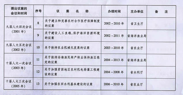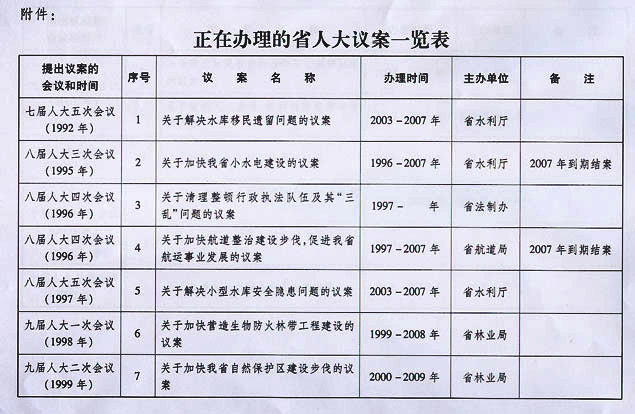 正在辦理的省人大議案一覽表