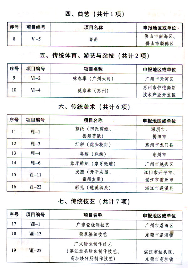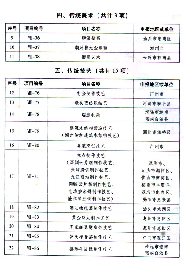 廣東省人民政府關(guān)于批準(zhǔn)并公布廣東省第六批省級非物質(zhì)文化遺產(chǎn)名錄的通知
