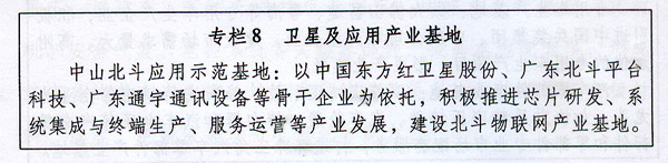 以中山市為主,重點(diǎn)發(fā)展衛(wèi)星通信、衛(wèi)星導(dǎo)航、衛(wèi)星遙感三大領(lǐng)域,不斷推進(jìn)應(yīng)用概念和應(yīng)用模式創(chuàng)新,積極拓展衛(wèi)星在應(yīng)急、救災(zāi)、氣象監(jiān)測(cè)、通用航空、智能交通、物聯(lián)網(wǎng)等應(yīng)用領(lǐng)域,著力發(fā)展衛(wèi)星導(dǎo)航終端及位置服務(wù)、衛(wèi)星通信廣播、自主遙感信息等衛(wèi)星應(yīng)用產(chǎn)業(yè)鏈,培育開發(fā)北斗衛(wèi)星空間基準(zhǔn)授時(shí)、高分辨率高光譜遙感圖像處理及應(yīng)用和空間信息三維顯示等技術(shù)和裝備。到2017年,培育形成10家以上銷售額超億元的衛(wèi)星應(yīng)用企業(yè),初步建立區(qū)域衛(wèi)星應(yīng)用產(chǎn)業(yè)體系。