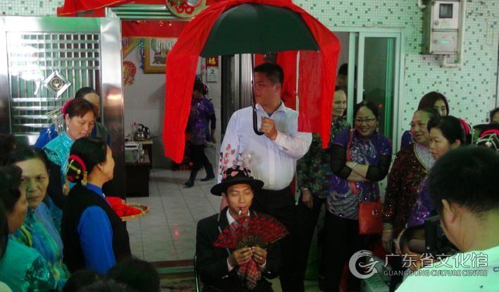 大亞灣地區(qū)古來就是疍民的聚居地之一,明末清初屈大均《廣東新語》稱,“諸蛋以艇為家,是曰蛋家。其有男未聘,則置盆草于梢;女未受聘,則置盆花于梢,以致媒妁。婚時(shí)以蠻歌相迎,男歌勝則奪女過舟。”大亞灣漁家婚嫁是大亞灣地區(qū)疍家漁民人生禮俗中的重要組成部分,其保留了沿海疍民“蠻歌相迎”等傳統(tǒng)婚嫁禮儀,是傳統(tǒng)上疍家漁民“浮家泛宅”生活的縮影。現(xiàn)如今,大亞灣漁家婚嫁主要分布在惠州市大亞灣地區(qū)的沿海疍民聚居村落,包括大亞灣經(jīng)濟(jì)技術(shù)開發(fā)區(qū)的澳頭街道辦東升村、前進(jìn)村、金門塘村和霞涌街道辦霞新村。