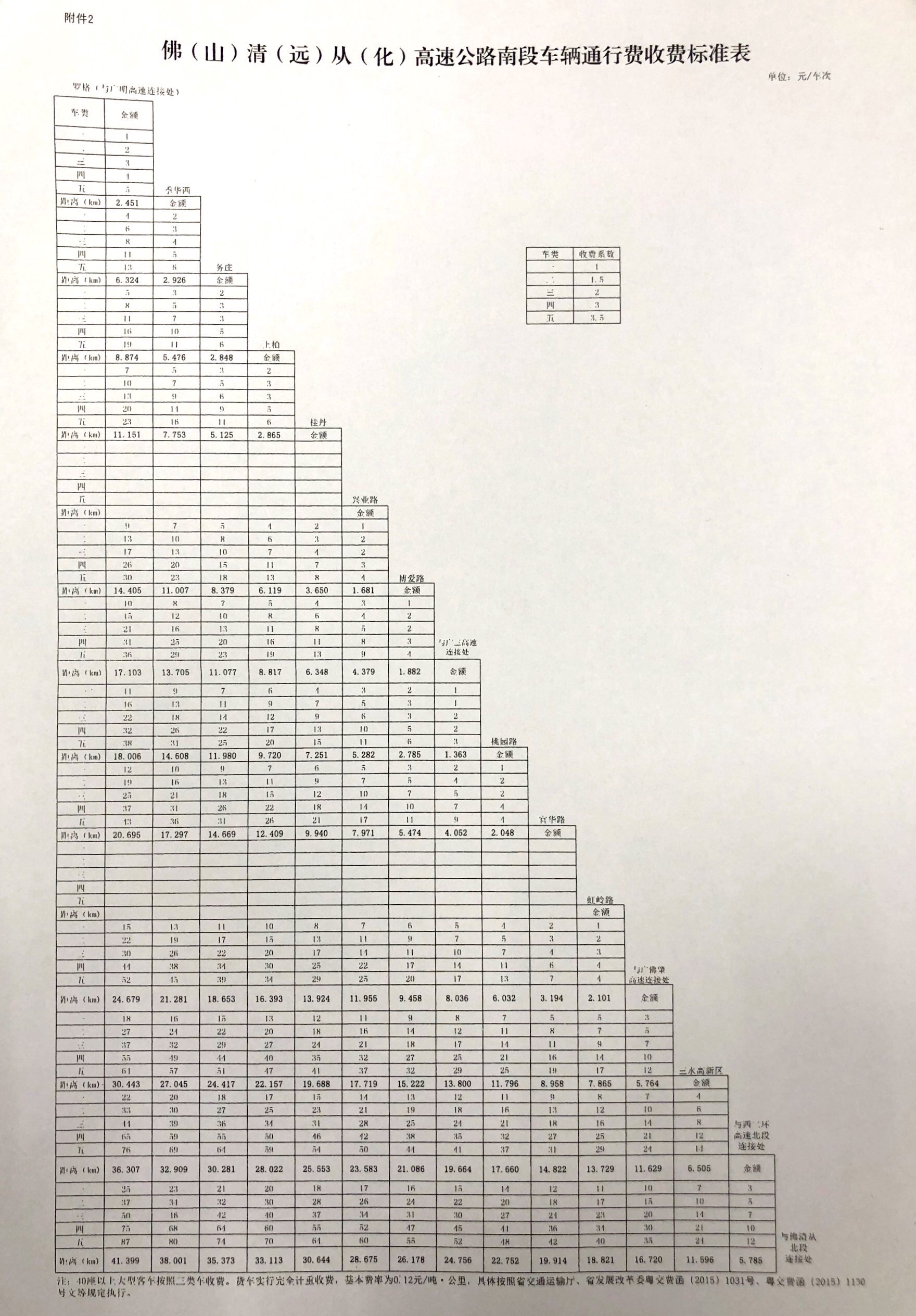 ? ? ? ? ? 2.佛(山)清(遠(yuǎn))從(化)高速公路南段車輛通行費(fèi)收費(fèi)標(biāo)準(zhǔn)表